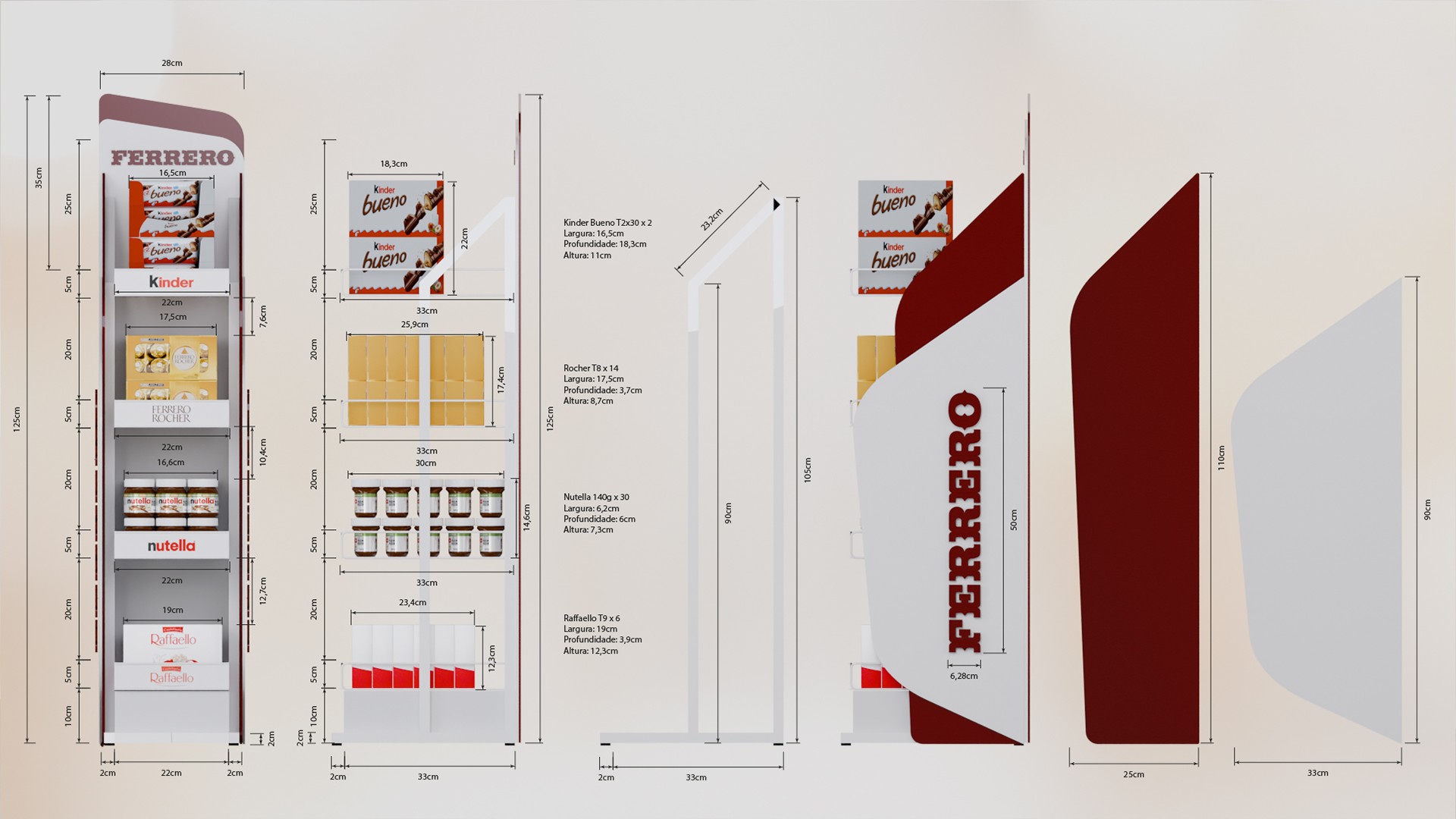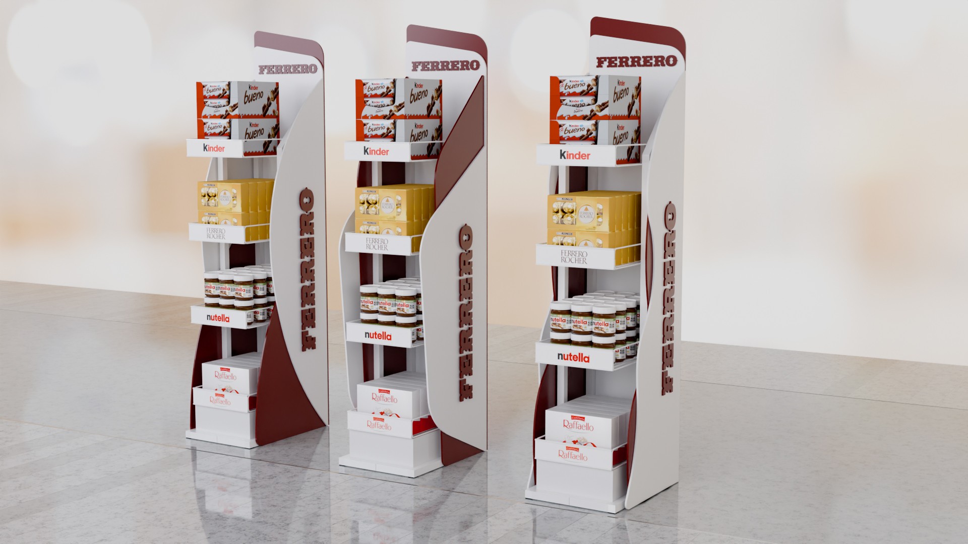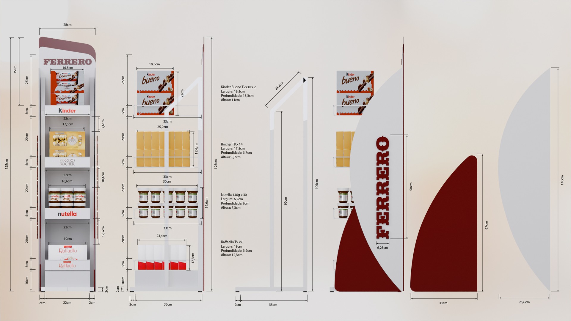 Criação e modelagem 3D de displays aramados para promover produtos da Ferrero.
