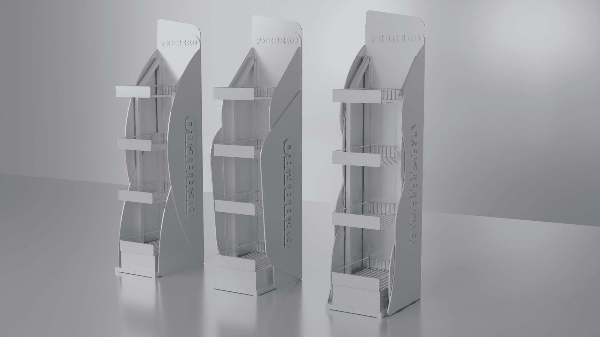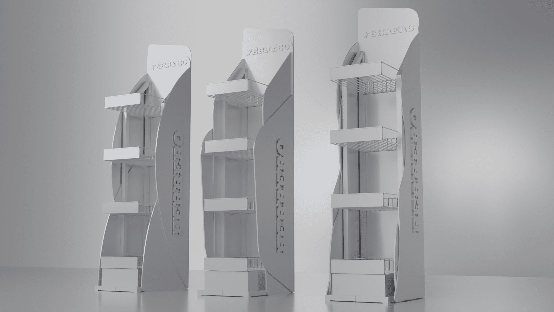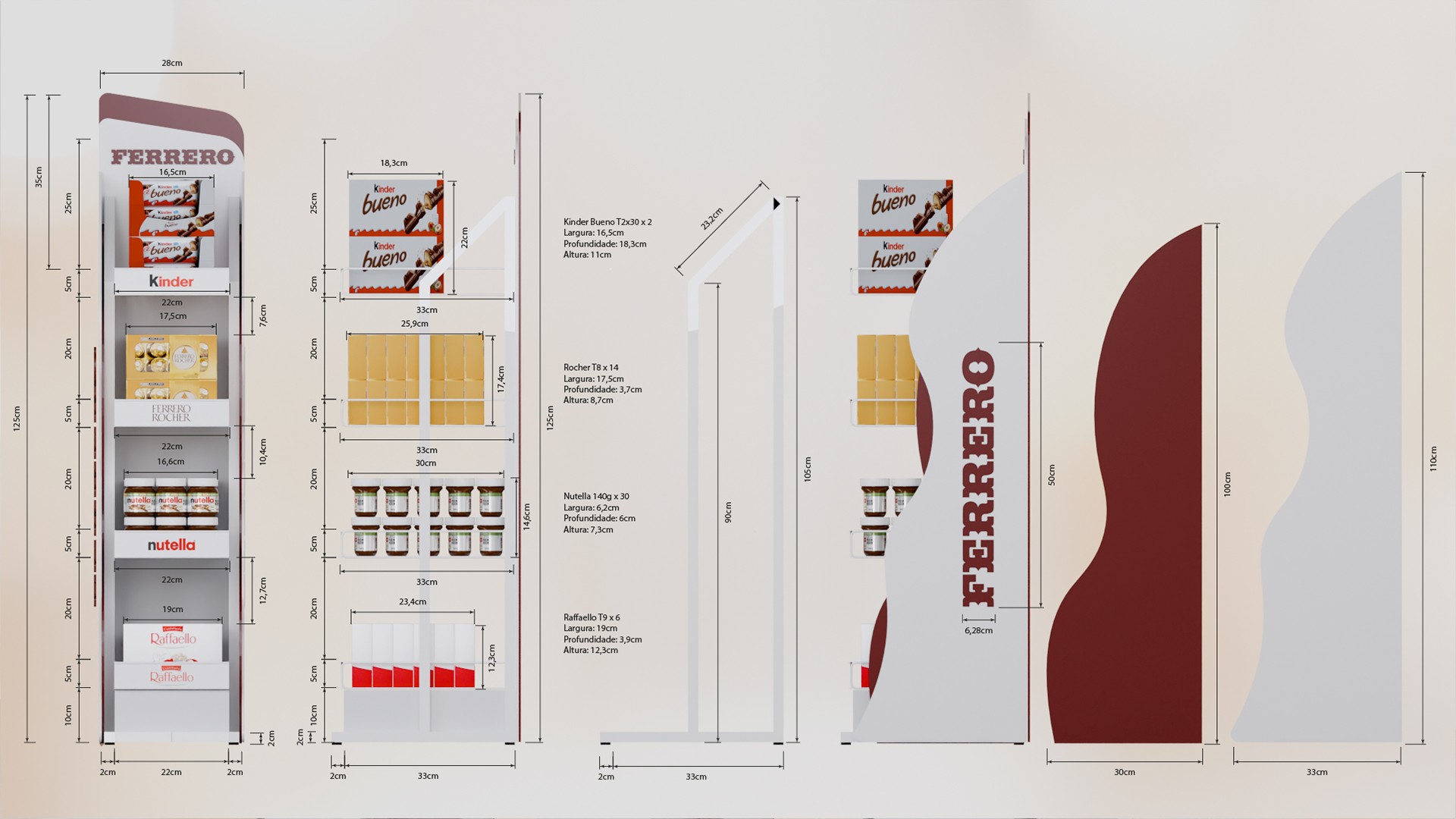 Criação e modelagem 3D de displays aramados para promover produtos da Ferrero.